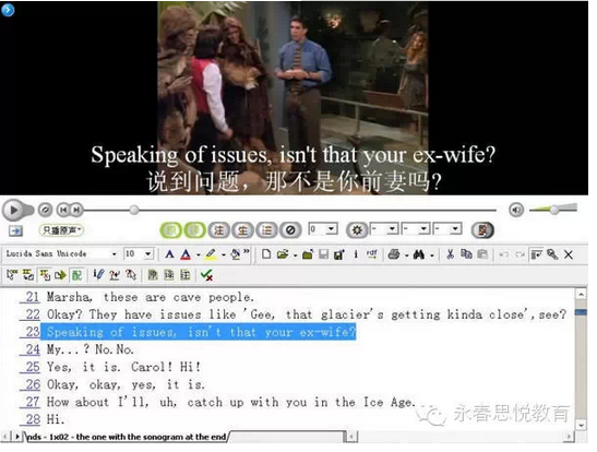 第二、三遍(听力):只看英文字幕,看不懂的地方根据影片剧情进行猜测。