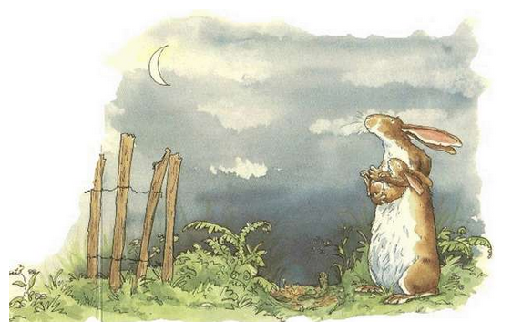 “我爱你,一直到你的脚趾够到的地方。”栗色的大兔子说,它把栗色的小兔子高高地抛到了它的头顶上。